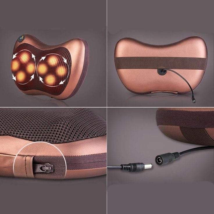 Suave. Bolas de masaje elásticos con la función de calefacción cuando la almohada es hace movimiento positivo, masajeador de cabeza, puede ser dirigido hacia la derecha o hacia la izquierda como usted prefiera.